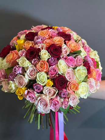 101 кенийская роза яркая микс три цвета 40см