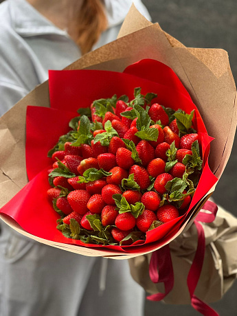 Состав: Клубника, мята. При оформлении букета из клубники накануне дня доставки, доставка осуществляется не ранее 10.00